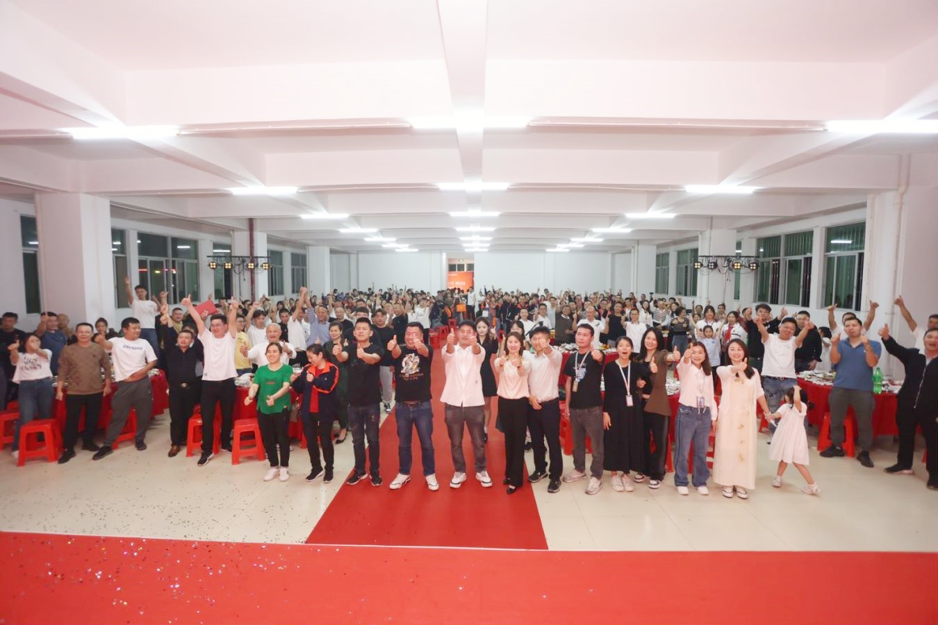 博美塑胶十周年庆祝晚会在欢声笑语中落幕,晚宴的最后全体员工举杯同庆并合影留念,为工厂十周年庆典画上圆满句号。